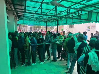 पंजीकरण कराने के लिए लगी लोगों की लाइन संवाद