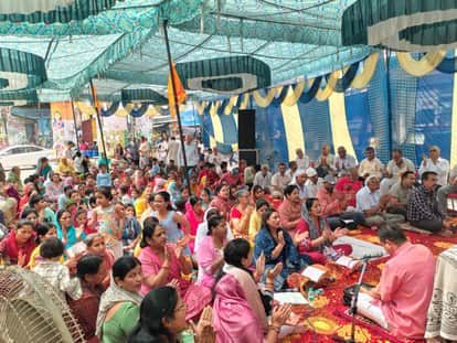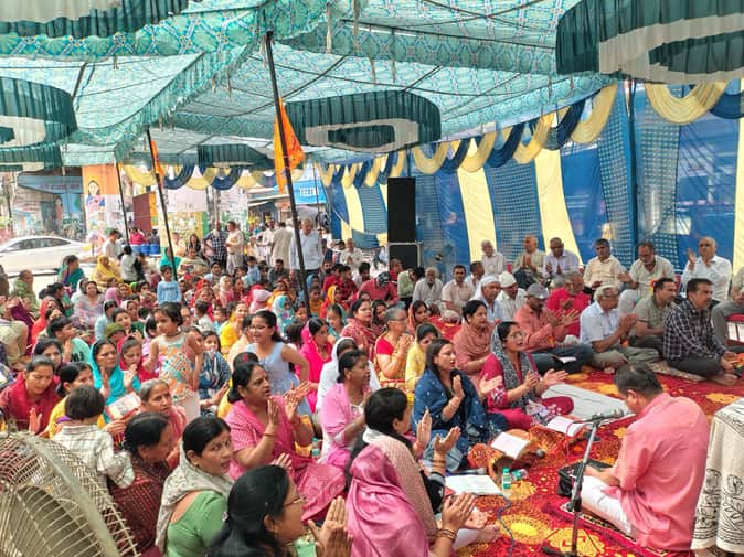भगतसिंह चौक पर श्री सुन्दरकांड पाठ मे उपस्थित श्रद्धालु । संवाद