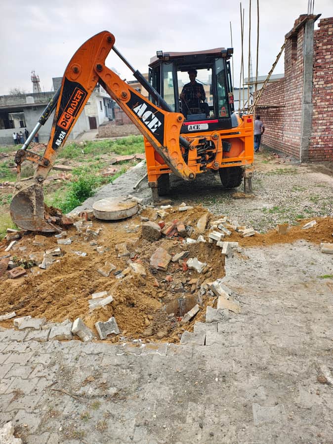 अवैध निर्माण को तोड़ता पीला पंजा। प्रवक्ता