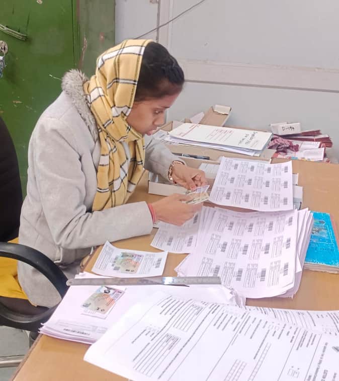 मतदाता सूची संबंधित कार्य करती कर्मचारी