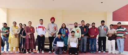बेस्ट एथलीट को प्रमाण पत्र देकर सम्मानित करते कॉलेज स्टाफ के सदस्य। संस्थान