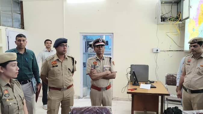 कुरुक्षेत्र। सीसीटीवी कंट्रोल रूम का अवलोकन करते हुए आईजी ओपी नरवाल व एसपी के साथ अन्य। पीआरओ