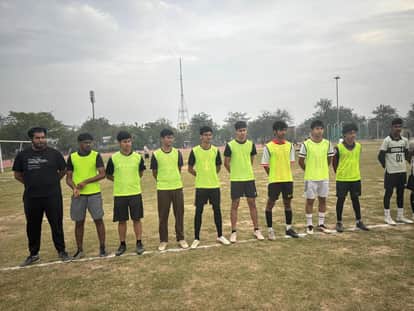 कुरुक्षेत्र। फुटबाल नर्सरी के लिए ट्रायल देने पहुंचे खिलाड़ी। स्वयं