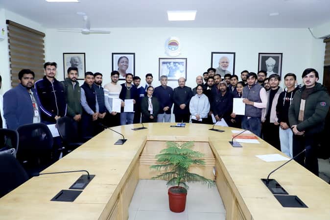 कुरुक्षेत्र। चयनित विद्यार्थियों को प्रोत्साहित करते कुलपति प्रो. सोमनाथ सचदेवा सहित अन्य सदस