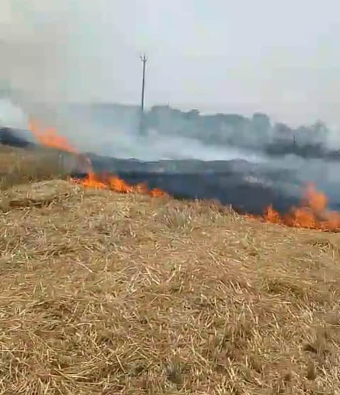 इस्माईलाबाद। कम्बोज कॉलोनी के समीप खेतों में गेहूं के फानों में लगी आग। संवाद