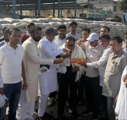 बाबैन। अनाज मंडी में मंगलवार को इस सीजन की प्याज की पहली आवक शुरू हो गई है। बाबैन मंडी में पहले दिन प्याज 850 रुपये प्रति क्विंटल बिका। गांव डाडलू (शाहाबाद) निवासी किसान भजन लाल जो पहले दिन अनाज मंडी में प्याज लेकर आए थे, उनको मार्केट कमेटी के चेयरमैन जसविंदर सिंह जस्सी व मार्केट कमेटी के सचिव गुरमीत सिंह ने मुंह मीठा करवाकर किसान को सम्मानित किया।