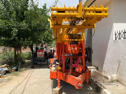 कुरुक्षेत्र। सबमर्सिबल ट्यूबवेल लगाने के लिए खड़ी की मशीन व पहुंचे कर्मचारी । संवाद ।