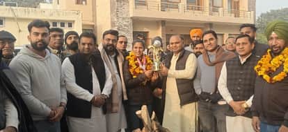 Kurukshetra News: प्लेयर ऑफ द टूर्नामेंट नवनीत कौर का शाहाबाद पहुंचने पर किया सम्मान