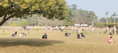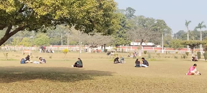 कुरुक्षेत्र। कुवि रोज गार्डन में धूप में बैठे विद्यार्थी। संवाद