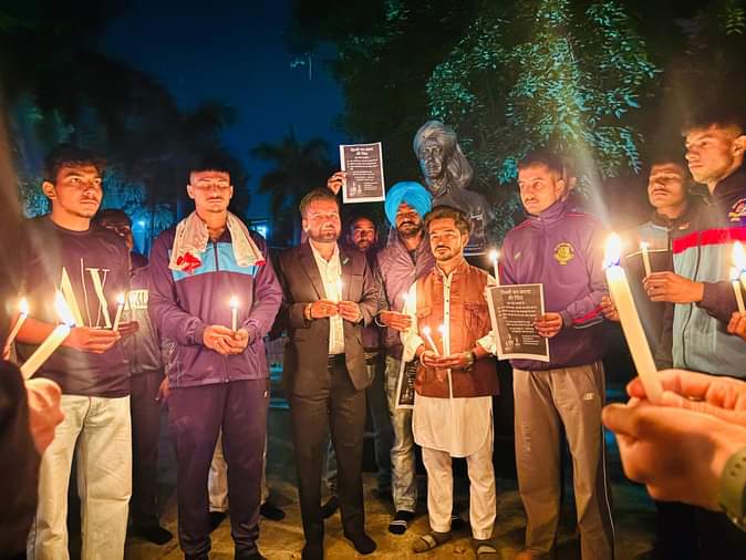 कुरुक्षेत्र। कुरुक्षेत्र विश्वविद्यालय के छात्रों ने 10 नवंबर को दिल्ली के लाल किला मेट्रो स्टेशन के पास हुए धमाके पर कैंडल मार्च निकाल दुख व्यक्त किया।