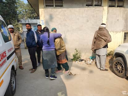 कुरुक्षेत्र। मोर्चरी के बाहर विपाल करती मृतक एसपीओ मनप्रीत की मां व अन्य परिजन। संवाद
