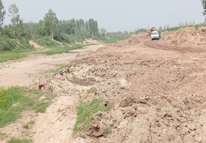 कुरुक्षेत्र। गांव कलसाना के पास मारकंडा नदी से निकाली जा रही मिट्टी व गाद। संवाद