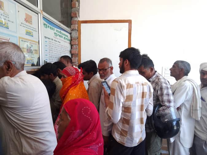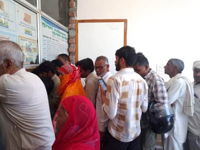 फोटो नंबर- 07पर्ची कटवाने के लिए एजेंसी के बाहर लाइन में लगे लोग। संवाद
