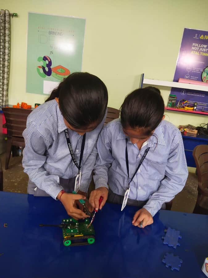 फोटो नंबर-09आरोही स्कूल की अटल टिंकरिंग लैब में अध्ययन करती छात्राएं। स्रोत-विभाग