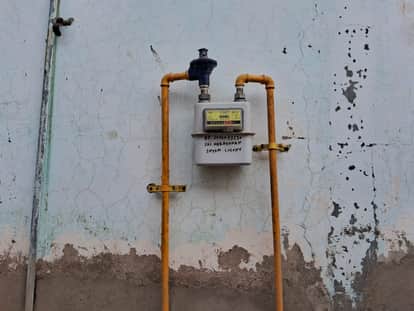 फोटो नंबर- 09रामकरण दास कॉलोनी में एक घर के बाहर लगा पीएनजी मीटर। संवाद