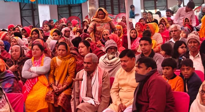 फोटो संख्या:66 गुढ़ा में आयोजित कथा में मौजूद श्रद्धालु। संवाद