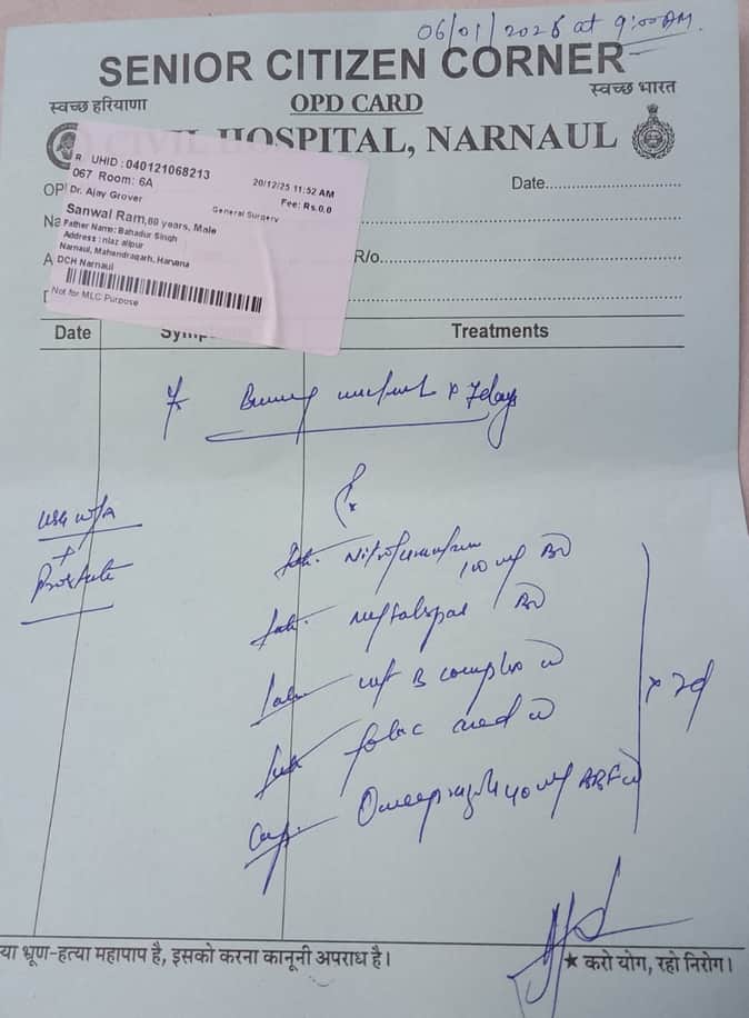 मुझे पेट संबंधित समस्या थी, जिस कारण अल्ट्रासाउंड कराने नागरिक अस्पताल आया था लेकिन मुझे जनवरी की डेट दी गई जिस कारण मैनें मजबूरन बाहर से अल्ट्रासाउंड कराया।-सांवल राम निवासी गांव नया गांव