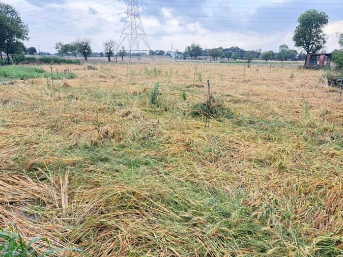 फोटो संख्या:62 कनीना में ओलावृष्टि से बिछी गेहूं की फसल। संवाद