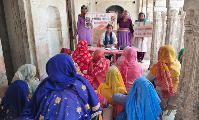 फोटो संख्या:58 गांव बचीनी के आंगनबाड़ी केंद्र पर महिलाओं को जानकारी देती सुपरवाइजर। विज्ञप्ति