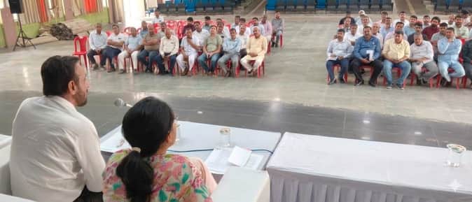 फोटो 03पेट्रोलियम पदार्थ व उर्वरक वितरक एजेंसी संचालक को संबोधित करते डीसी। विभाग
