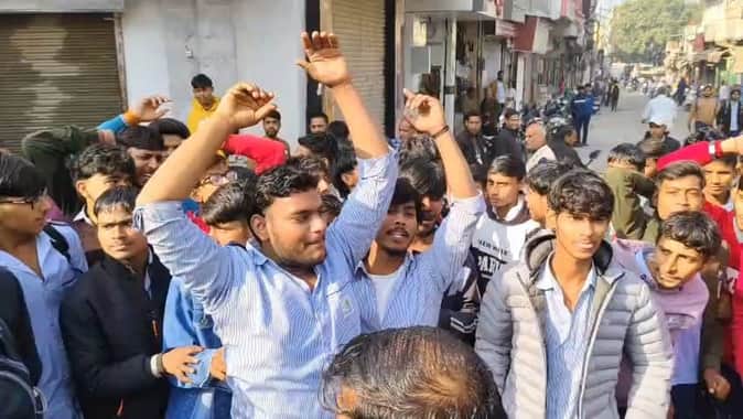 फोटो संख्या:74- भगवान परशुराम चौक पर नारेबाजी करते आईटीआई के विद्यार्थी---स्रोत- विद्यार्थी