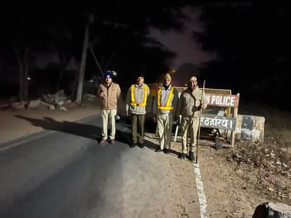 फोटो संख्या:76- दुलाेठ नाके पर तैनात पुलिस कर्मचारी