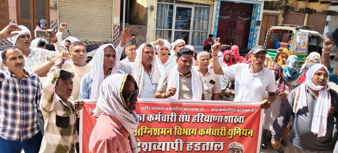 Mahendragarh-Narnaul News: दमकल कर्मियों के समर्थन में सफाई कर्मचारियों ने किया प्रदर्शन