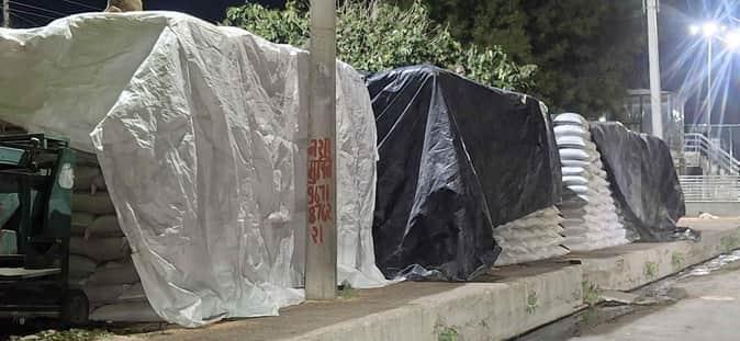 -फोटो 85 : बुधवार रात पौने 9 बजे! अनाज मंडी में गेहूं के कट्टों को तिरपाल से ढका गया। संवाद