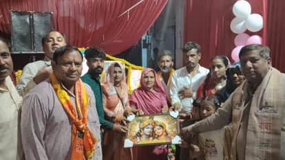 फोटो 03 यजमान को स्मृति चिह्न देकर सम्मानित करते मंडल सदस्य। मंडल