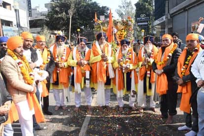 वहीं, नगर कीर्तन के दौरान गुरु ग्रंथ साहिब की पालकी की अगुवाई करते हुए पंच प्यारों ने संगत निहाल किया। नगर कीर्तन गुरुद्वारा भाई बहादुर सिंह से शुरू होकर नंबर-4 वार्ड नया बाजार, बजरंग भवन, पुराना बाजार, सब्जी मंडी, अर्जुन नगर से होता हुए शाम के समय गुरुद्वारा भाई बहादुर सिंह में वापस पहुंचा।