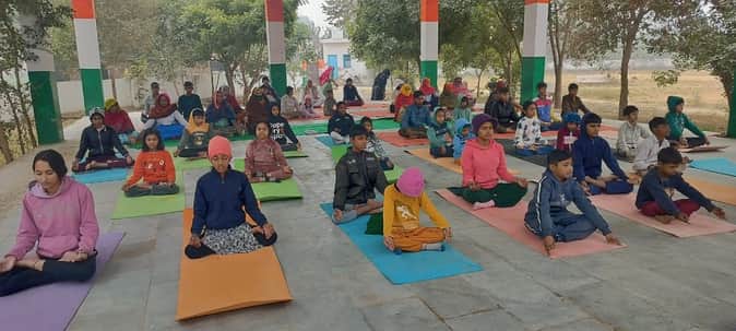 फाेटो संख्या:70गांव जांजडियावास योगशाला में योग करते महिलाएं व बच्चें---स्रोत-विभाग