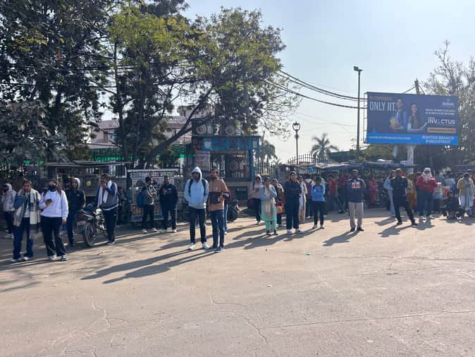 16...दिल्ली बाईपास चौक पर बसों का इंतजार करते यात्रियों की लगी भीड़। संवाद