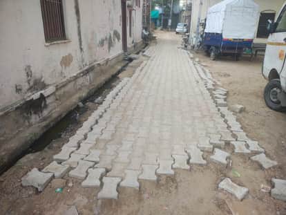 फोटो संख्या:67- मोहल्ला राठौड़ान में अधर में सड़क निर्माण कार्य--संवाद