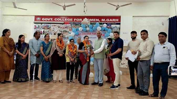 फोटो संख्या:61- राजकीय महिला महाविद्यालय महेंद्रगढ़ में नए प्रवक्ताओं की नियुक्ति पर सम्मानित