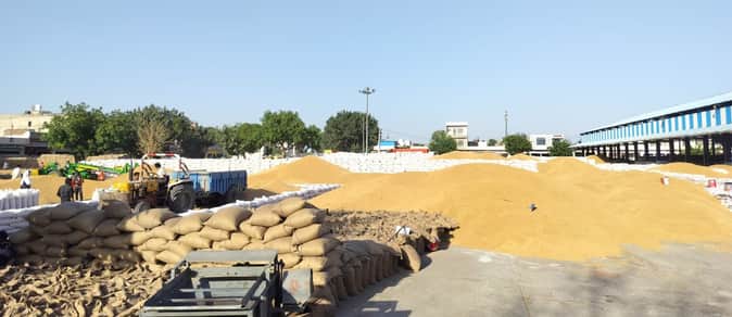 12जेएनडी29: शहर की अनाजमंडी में लगी गेहूं के ढेर। संवाद