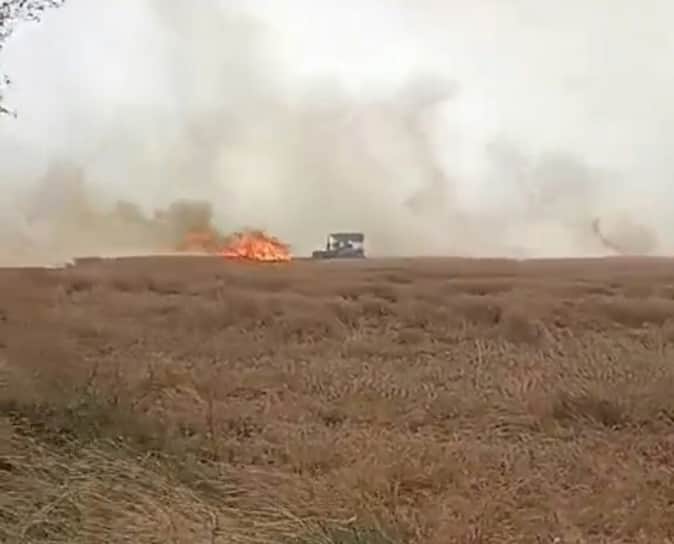 गेहूं के खेतों में लगी आग। संवाद
