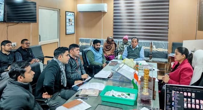 नगर निमम अधिकारियों के साथ विकास कार्यों पर चर्चा करते मेयर कोमल सैनी। स्रोत : कार्यालय