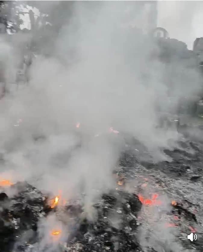 मुंडा माजरा गैस एजेंसी के सामने जलाया गया कचरा। संवाद