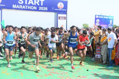 मैराथन दौड़ प्रतियोगता में भाग लेते युवा। संवाद