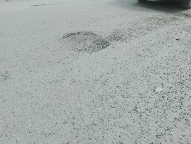 सेक्टर 12 में सड़क पर बने गहरे गड्ढे। संवाद
