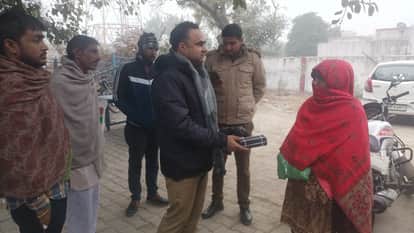 महिला से घटना की जानकारी लेती पुलिस। संवाद