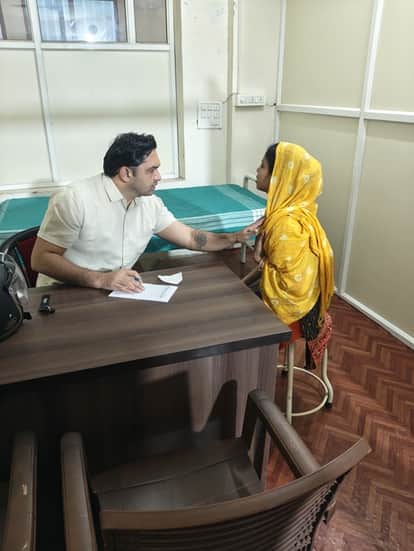 शिविर में मरीज की जांच करते चिकित्सक। स्रोत : संस्था