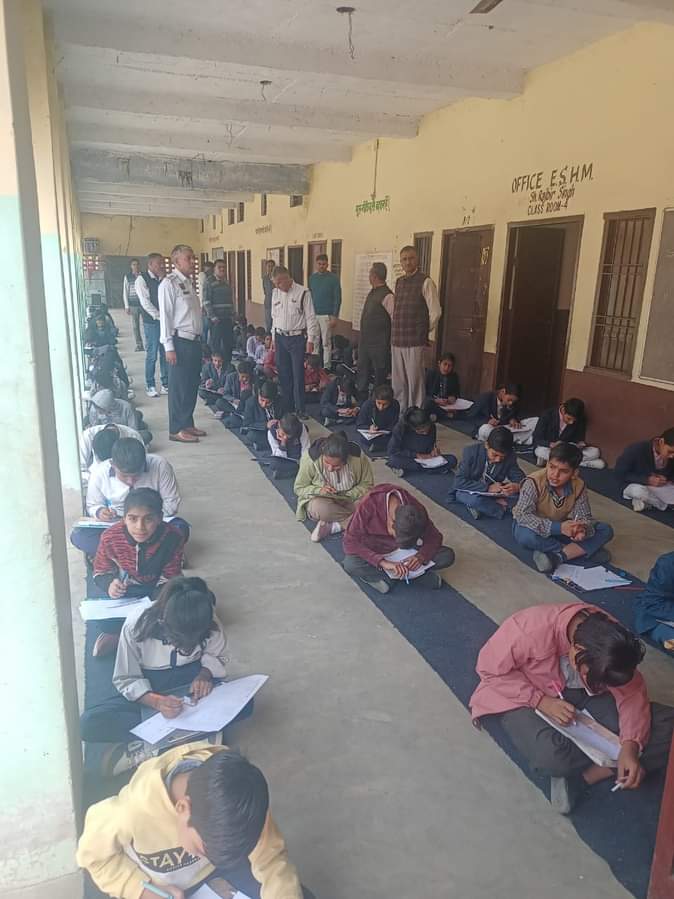 नाहड़ में परीक्षा देते बच्चे। स्रोत : पुलिस