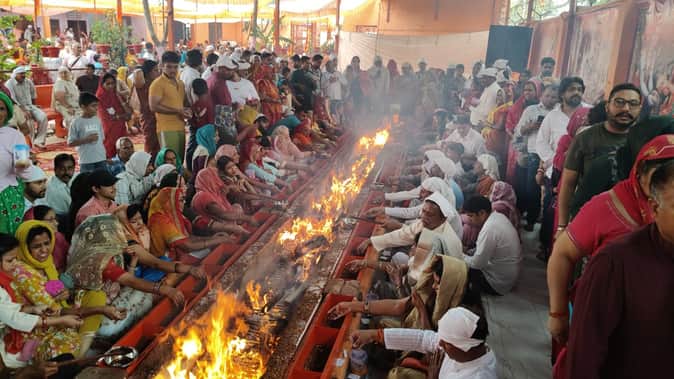 श्रीराम वाटिका में हो रहा हवन पूजन। स्रोत : मंदिर