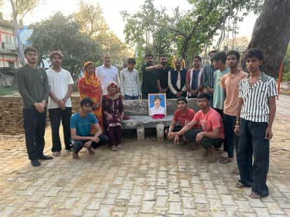 भगत सिंह की प्रतिमा पर श्रद्धांजलि अर्पित करते लोग। स्रोत : संस्था
