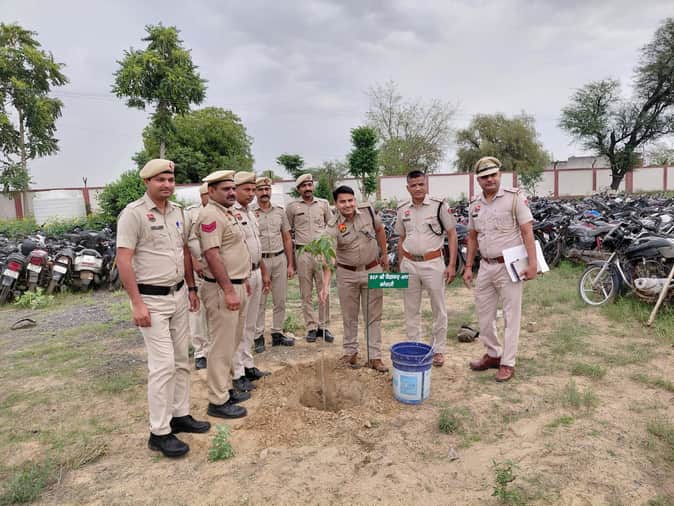 थाना रोहडाई में पौधरोपण करते डीएसपी विद्यानंद। स्रोत : पुलिस