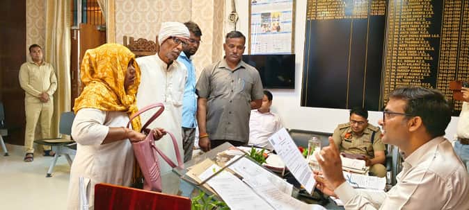 अपने कार्यालय में आयोजित समाधान शिविर में लोगों की समस्या का समाधान करते एसडीएम विजय कुमार या