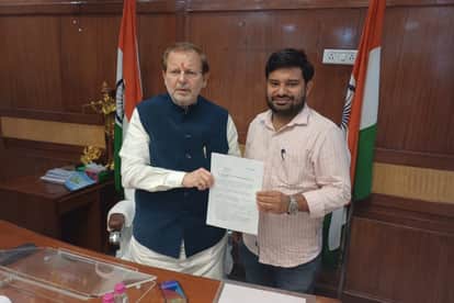 कैबिनेट मंत्री डॉ. अरविंद शर्मा से मुलाकात करते रेवाड़ी निवासी विवेक भाटोटिया। स्रोत: स्वयं
