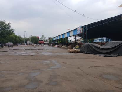 बूंदाबांदी के बीच खाली पड़ी मंडी। संवाद
