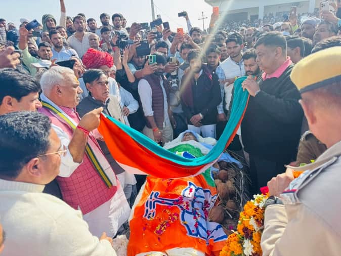 पूर्व मंत्री को राजकीय सम्मान प्रदान करते हुए गार्ड ऑफ ऑनर दिया गया। इस अवसर पर गृह, गोपालन, पशुपालन एवं डेयरी तथा मत्स्य पालन विभाग राज्य मंत्री जवाहर सिंह बेढ़म, राज्य पर्यावरण, वन एवं जलवायु परिवर्तन राज्य मंत्री (स्वतंत्र प्रभार) संजय शर्मा, तिजारा विधायक महंत बालक नाथ योगी, विधायक रामगढ़ सुखवंत सिंह, विधायक बहरोड डॉ जसवंत यादव, कार्यकर्ता एवं क्षेत्रवासी उपस्थित रहे।